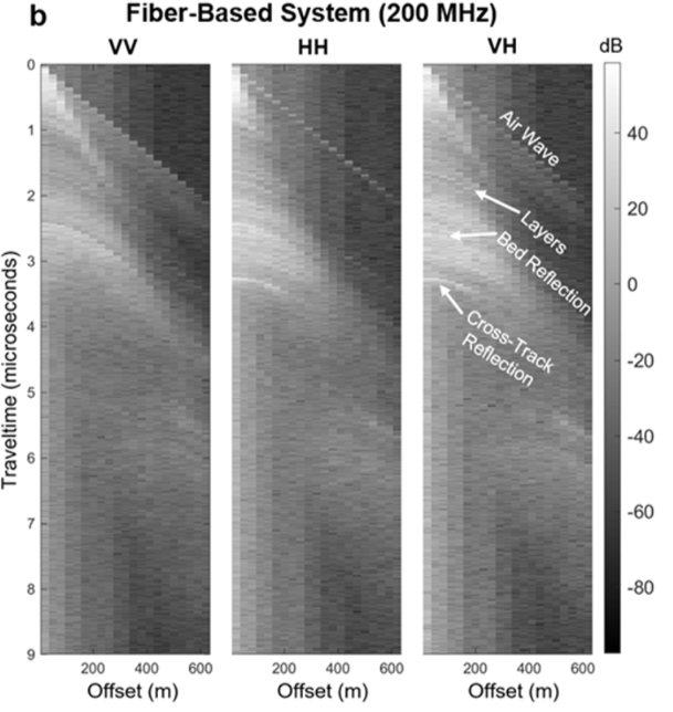 In addition to their utility as tools for observing the natural world, we are interested in radio geophysical instruments as objects of study themselves. Airborne and snowmachine-borne ice penetrating radars offer the flexibility for parameters and surveys to be finely tuned for specific targets, areas, or processes. By contrast, satellite, drone-borne, and stationary surface-based sounders often have resource envelopes that require truly optimized designs. In addition to advancing these more-standard radar architectures, we are actively pursuing the development of heterodox, bespoke, and scalable low-cost radio-glaciological sensors (e.g., orca.radioglaciology.com). This includes systems for passive radio sounding using solar emissions and other ambient electromagnetic signals (similar to ambient noise seismology), distributed radar networks for tomographic imaging, and alternative architectures for sensor fusion, machine learning, and autonomy. Developing novel radars also provides a deeper understanding of their specific capabilities and limitations so that they can be put to more creative and productive scientific use.